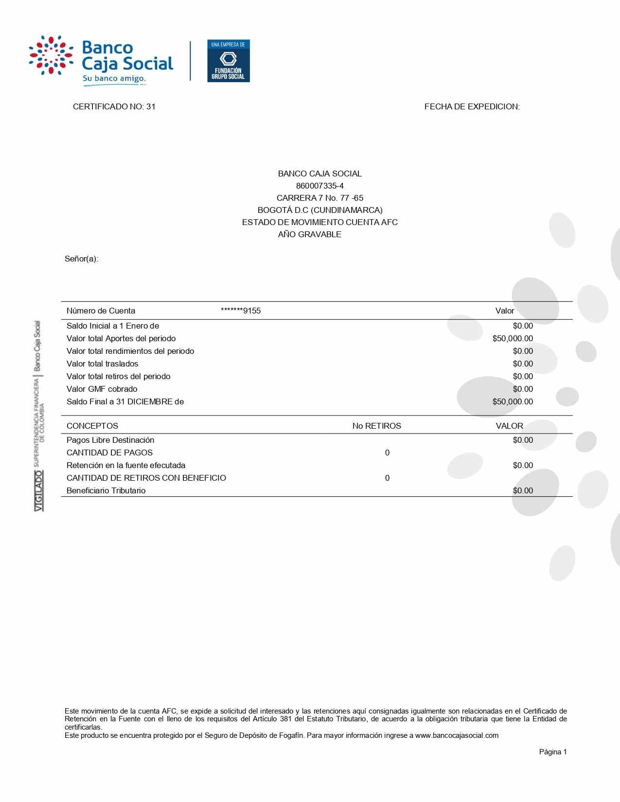 Es un documento que expide el banco y donde puedes encontrar la siguiente información: el saldo de tu cuenta de ahorro para el fomento a la construcción (AFC), los movimientos de tu cuenta, los intereses que te pagaron y el valor de las retenciones que te practicaron durante el año. Ya que tenías una cuenta AFC con esta entidad, te solicitamos este certificado para tu declaración del año gravable dato:AG.