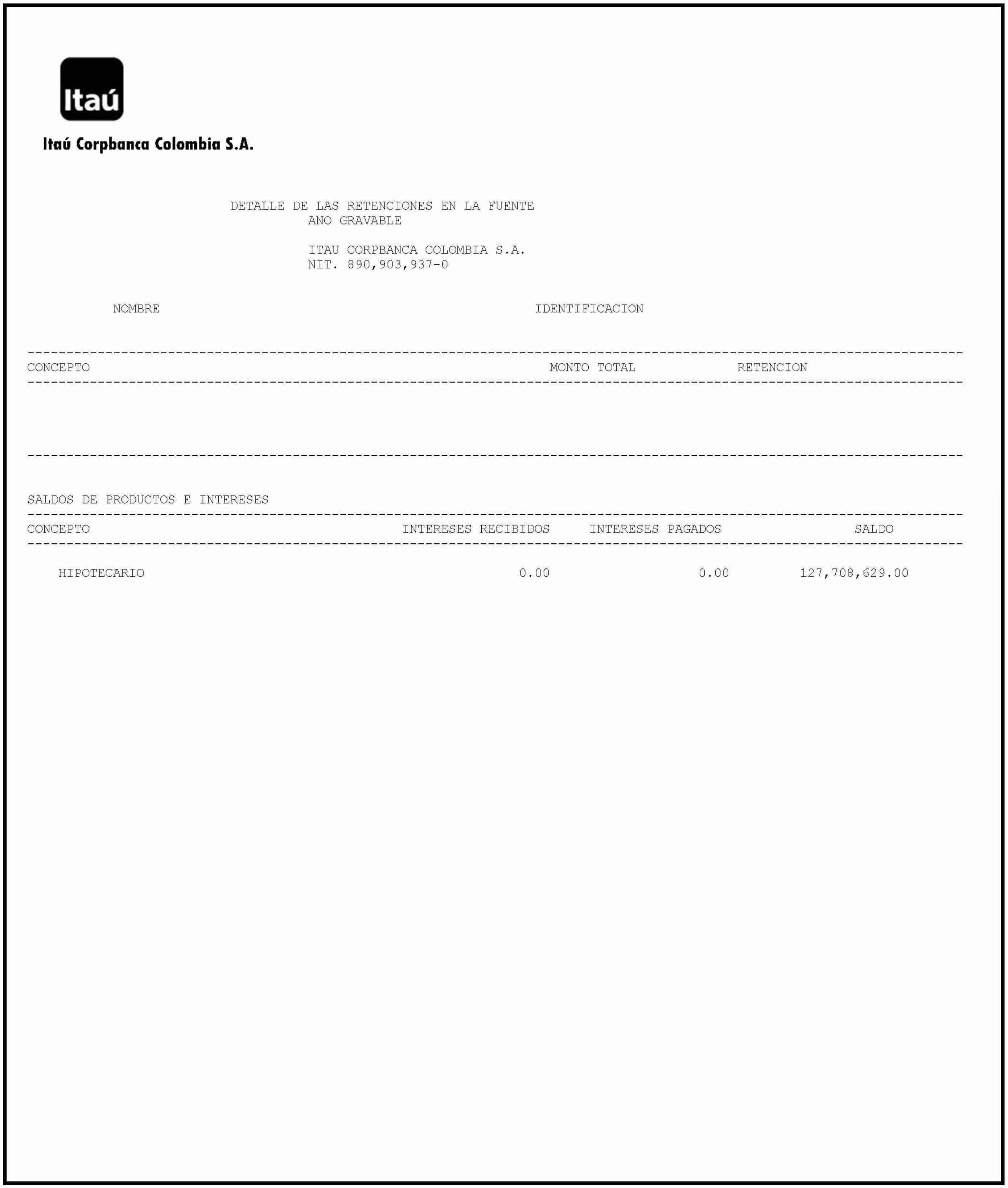 Es un documento que emite el Banco Itaú y que contiene la información clave de tu crédito hipotecario. Te servirá para reportar correctamente tanto tus pasivos como los intereses que pagaste durante el año gravable 2024, los cuales pueden ser deducibles en tu declaración de renta.