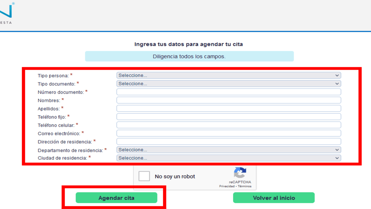 Importante tener identificado el departamento, ciudad y sede donde se va realizar la solicitud.