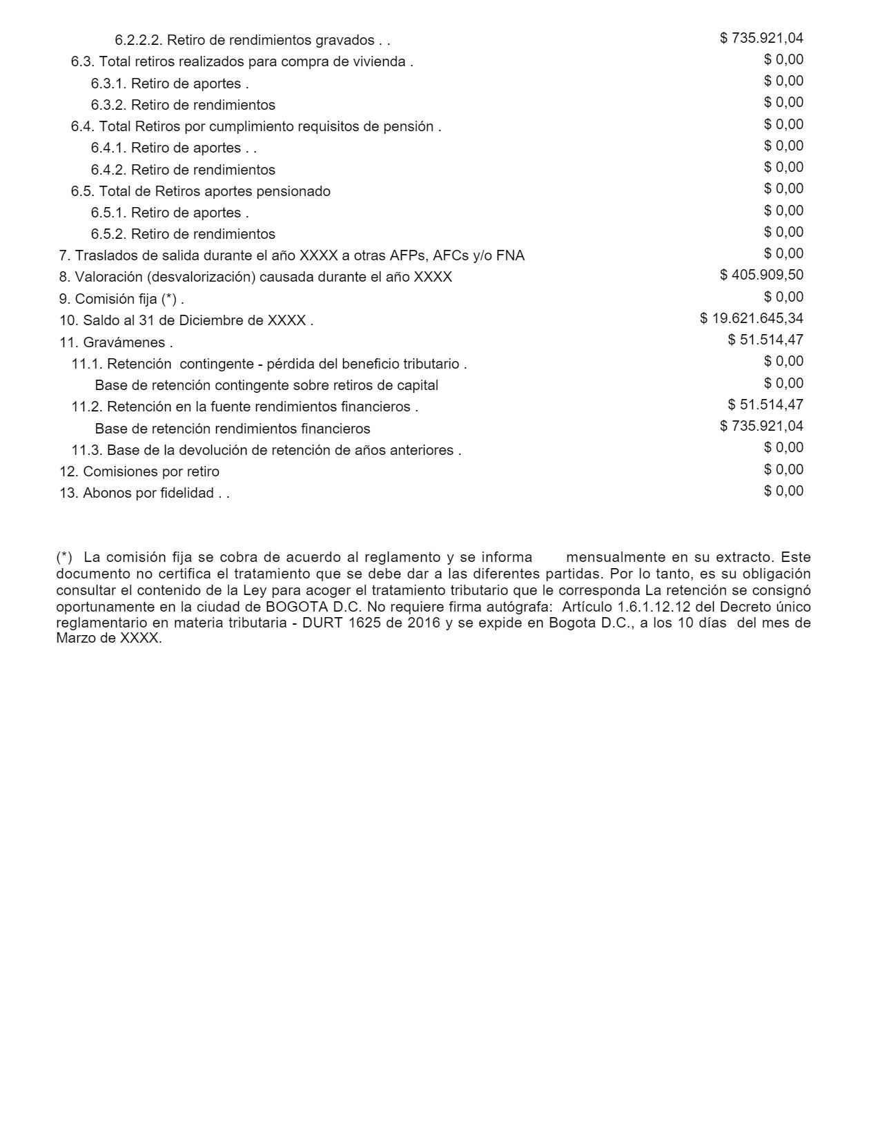 Es un documento que certifica tus aportes a pensiones voluntarias en Colfondos. Contiene información como: valor de los aportes, retenciones practicadas y movimientos en el año que desees consultar.